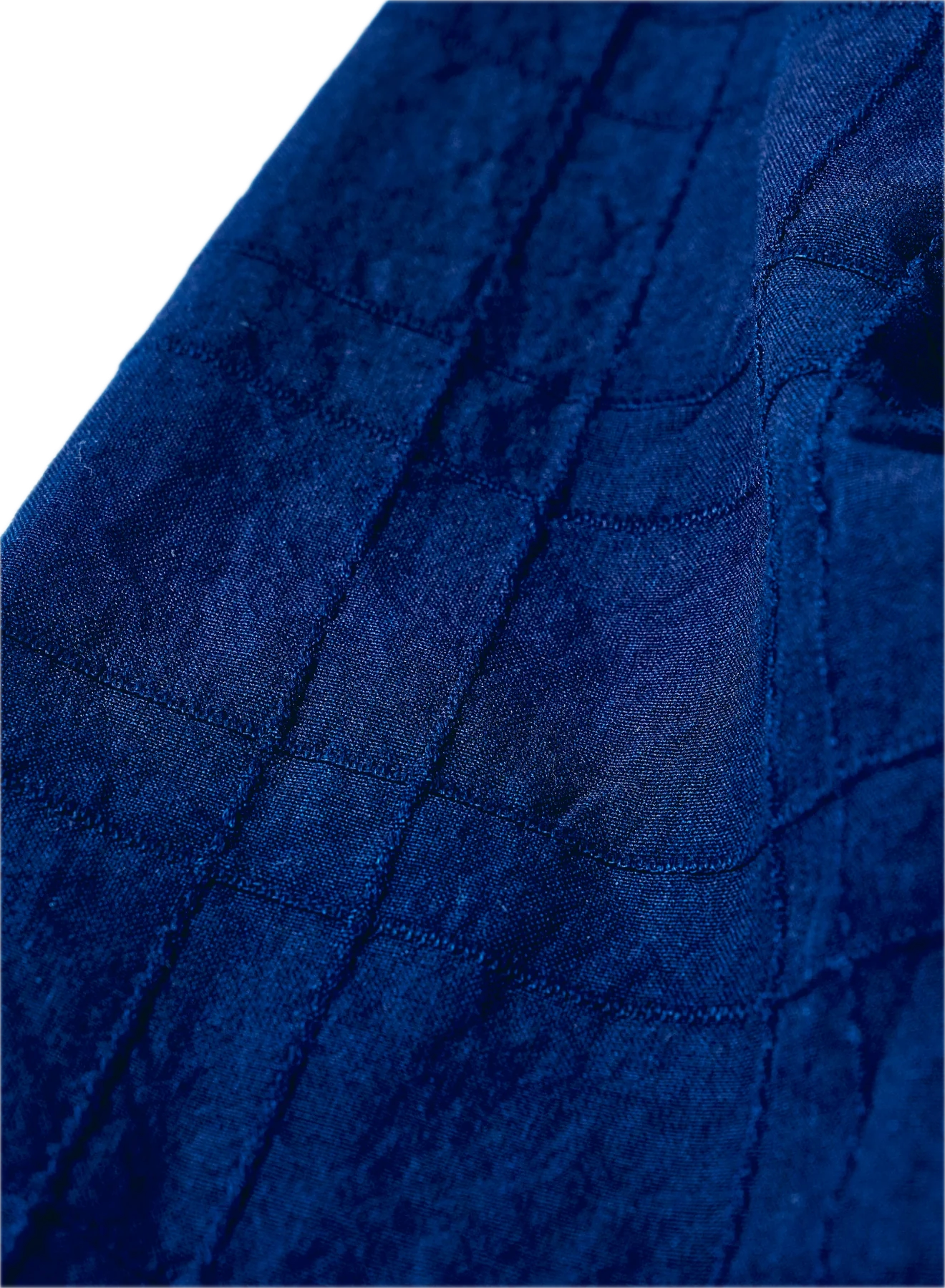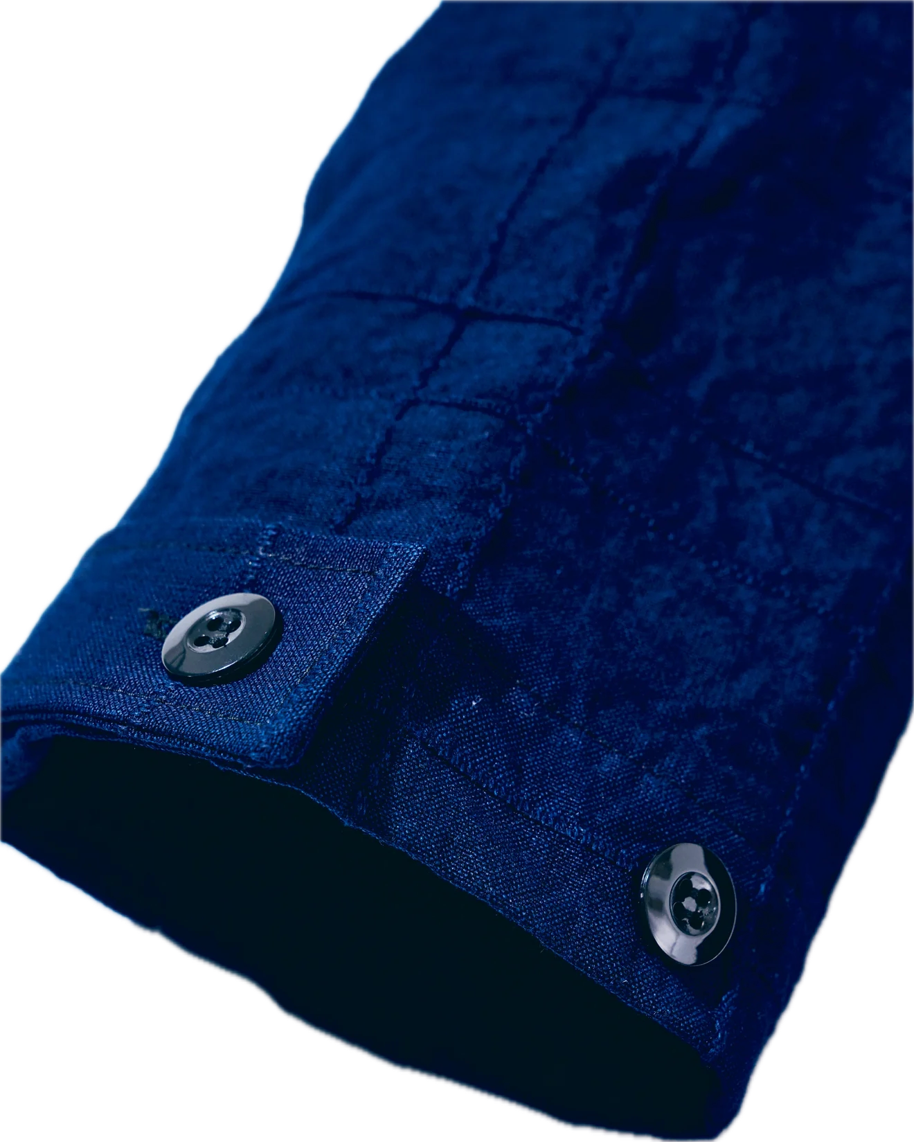 Woven from rope-dyed indigo yarns that promise rich, evolving fades, this jacket combines two distinct woven fabrics to balance texture and tone. The construction skips two-needle rolled stitching in favour of lock stitch, yielding added strength and a unique puckering pattern over time.