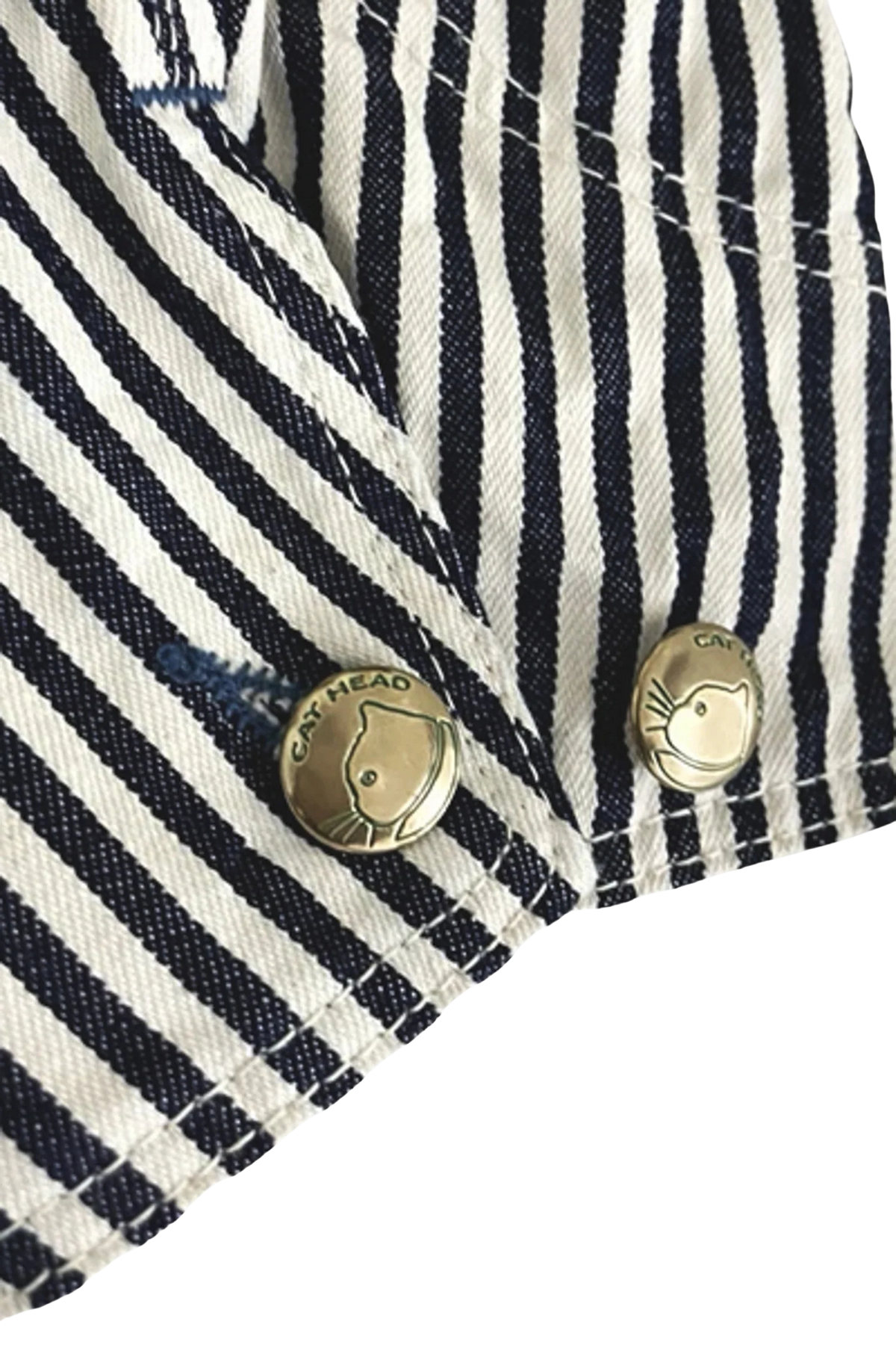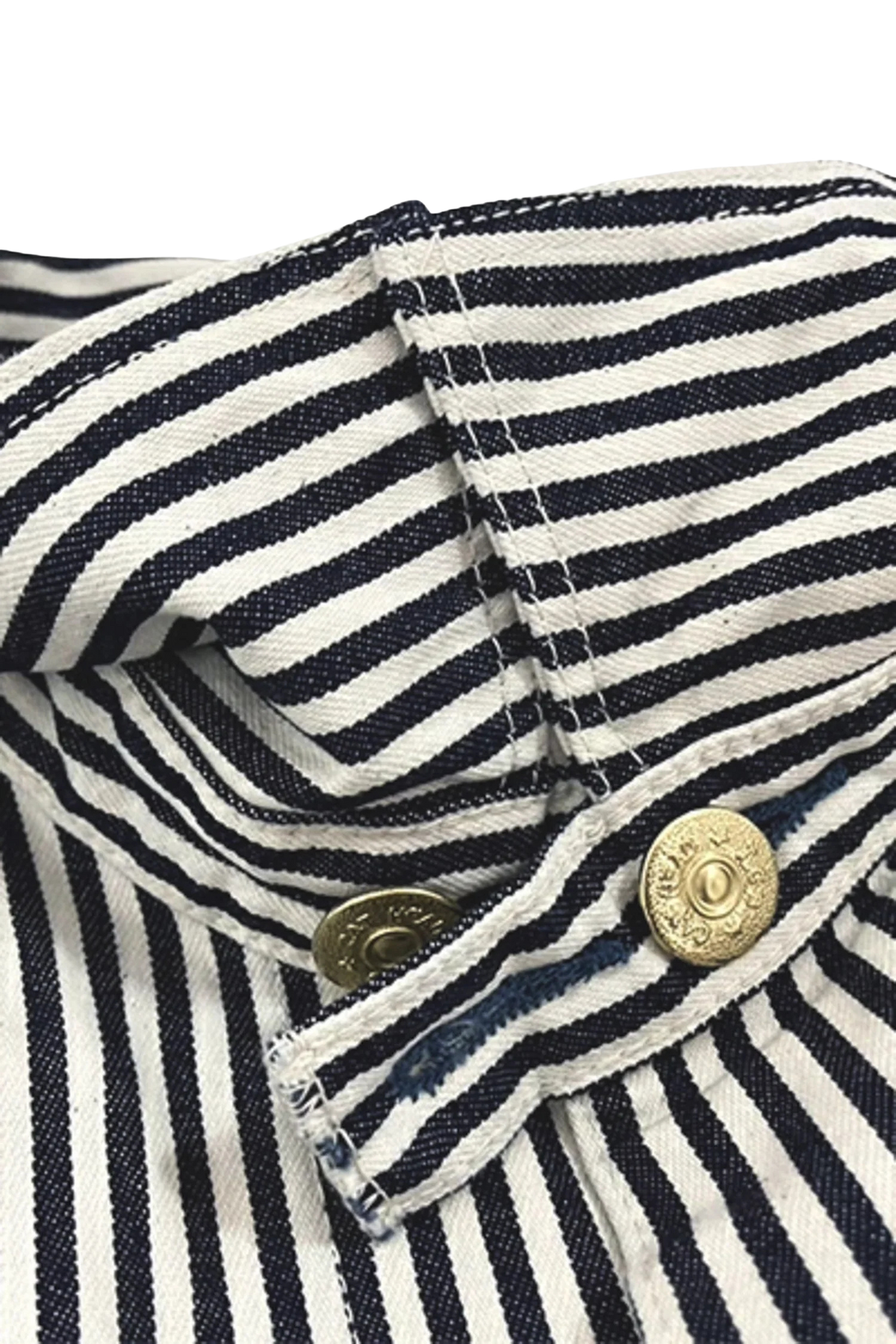 Cut in a short, boxy silhouette, it leans more work jacket than traditional chore coat. The hickory stripe fabric keeps things rooted in railroad-era workwear, using a lighter, vintage-leaning tone with a grey-dyed weft to subtly mute the contrast and help conceal wear over time.